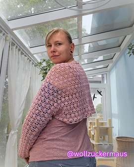 Die Idee für den Bolero entstand ursprünglich, als ich einen kleineren Ärmelschal häkeln wollte. Quasi als Testlauf, um das Konzept auszuprobieren. Tatsächlich habe ich den Bolero sogar vor dem großen Ärmelschal „Svenjas Seelenwärmer“ begonnen. Aber während der große Seelenwärmer schnell fertig wurde, verschwand der kleine Bolero erst mal für ein Jahr im Schrank, bevor ich ihn wieder hervorholte und meinen Followern auf Instagram zeigte.