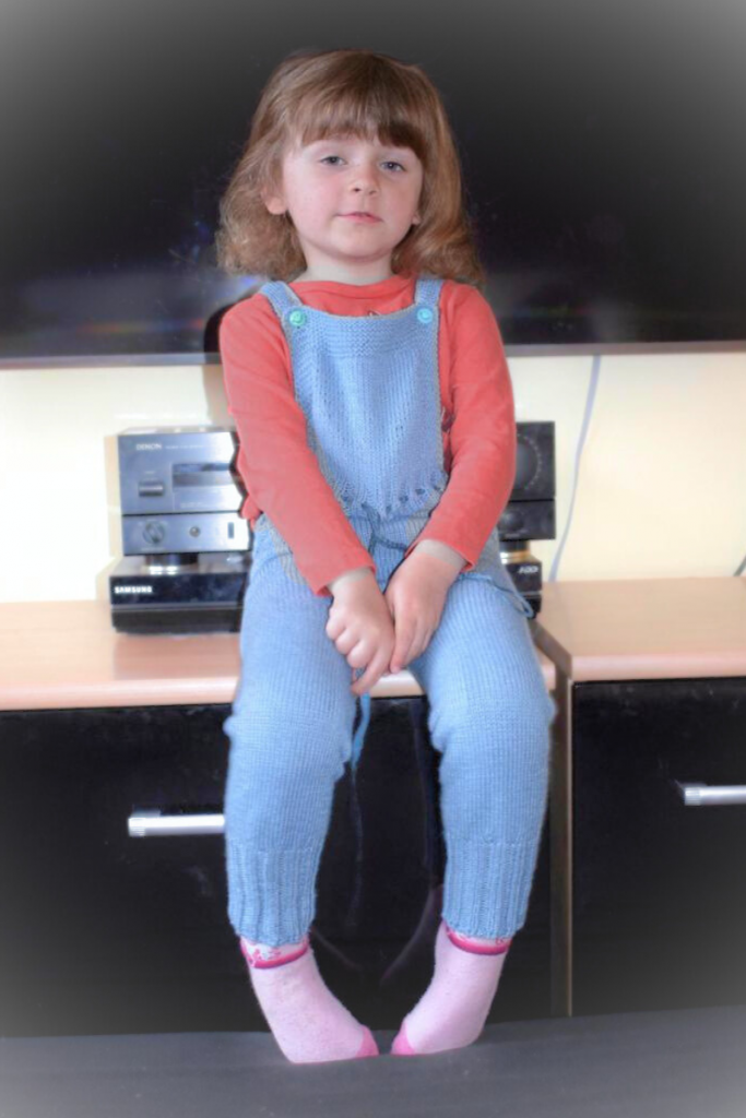 Die habe ich so konzipiert, dass sie über Jahre mitwächst. Die Beinbündchen sind extra lang und können anfangs umgeschlagen werden. Und die Träger sind bewusst etwas länger. Dadurch passt sie auch oben rum länger. Deshalb braucht die Strickanleitung auch nur drei Größen: vom Baby bis zum Kleinkind (etwa 3 bis 4 Jahre).